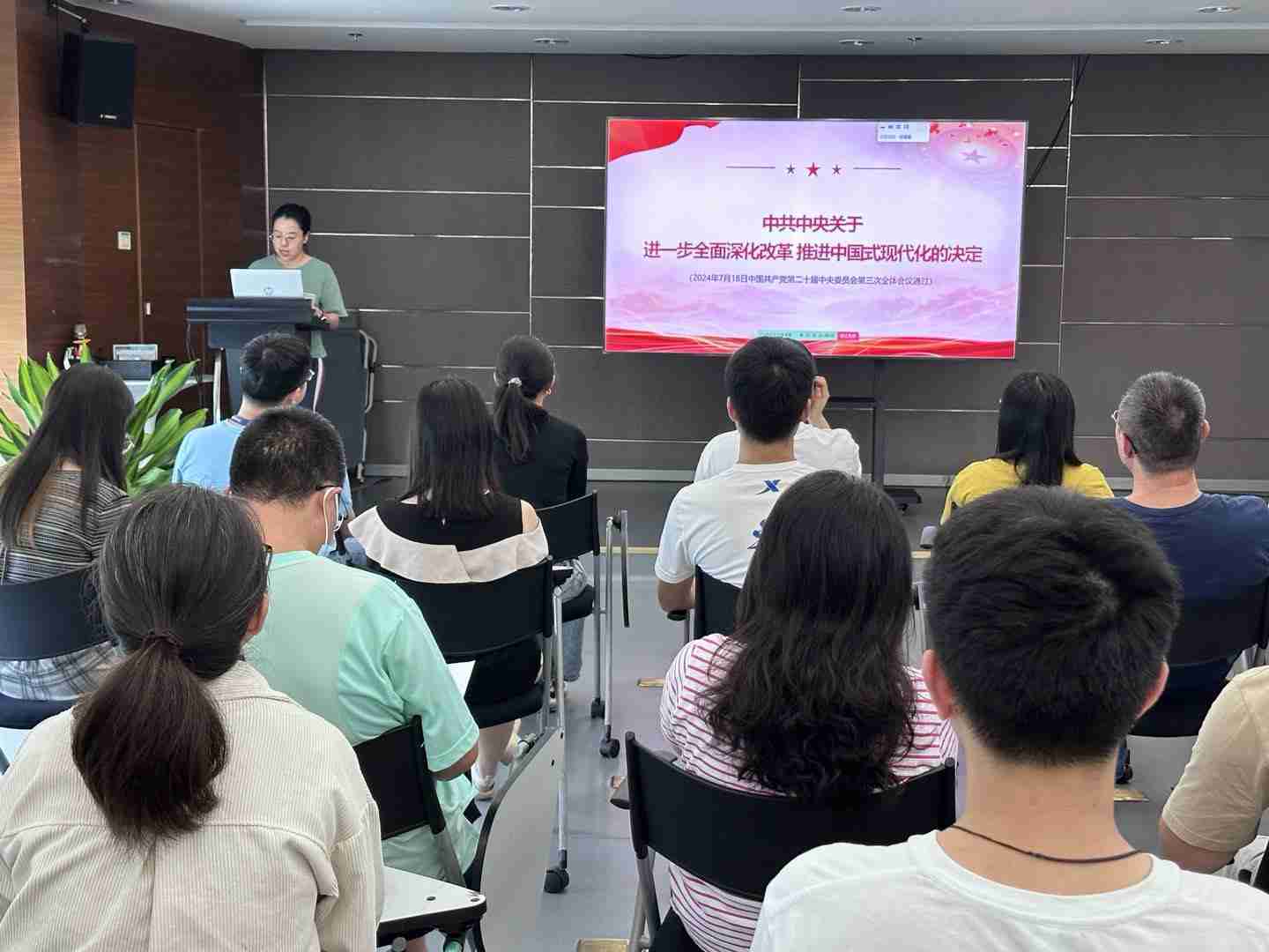 与会人员深入学习《决定》内容。。党的二十届三中全会提出必须增强文化自信,,,发展社会主义先进文化,,弘扬革命文化,,,传承中华优秀传统文化,,,加快适应信息技术迅猛发展新形势,,,构建更有效力的国际传播体系,,这为广大文化产业工作者指明了奋斗方向。。。
